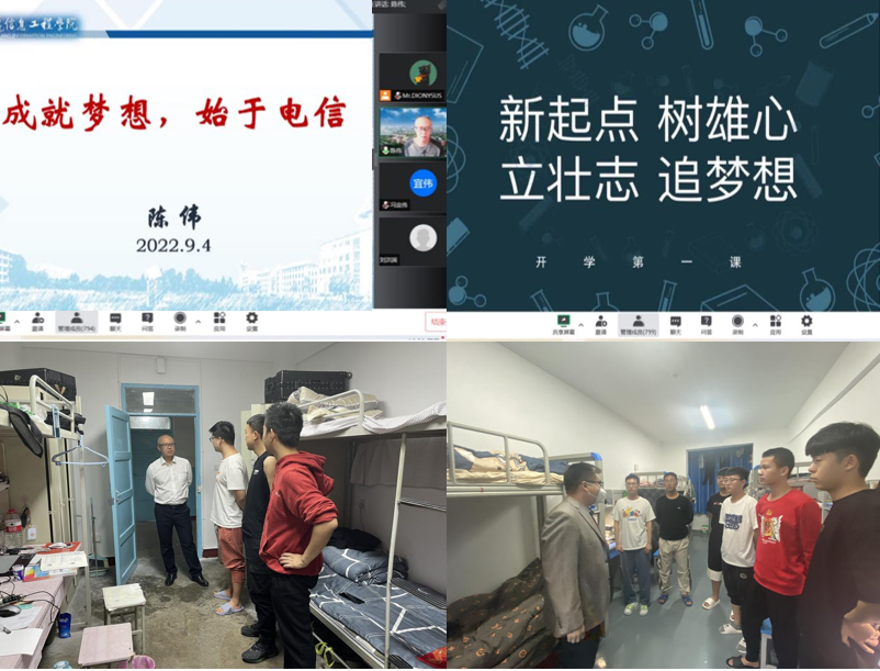 电信学院通过腾讯会议举办2022级“大学第一课”新生入学教育暨新生入党启蒙第一课活动。学院邀请学院领导担任主讲嘉宾。讲座主要从学院的发展历程、师资力量、实验室建设、未来发展、创新创业、学科水平等方面,向大家做详细的介绍和展示。为了让2022级新生更快适应学校生活,学院领导班子成员及辅导员、班主任老师深入学生宿舍,勉励大家珍惜在校学习时光,践行“红柳精神”,做新时代的青年。