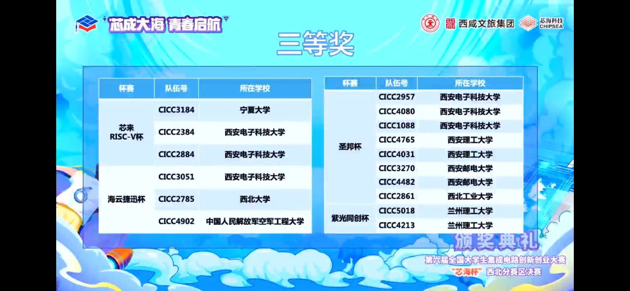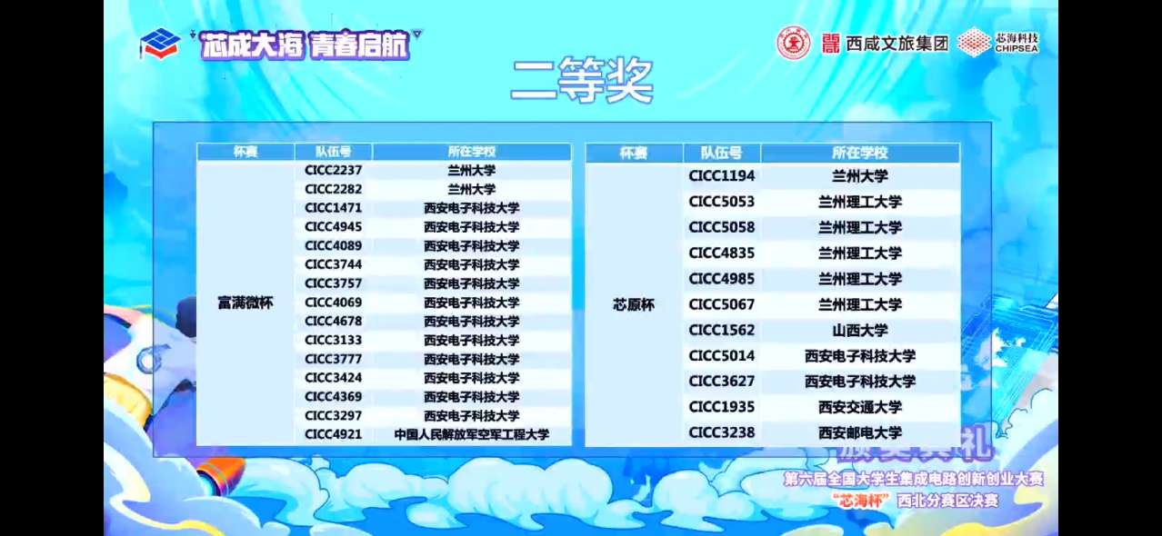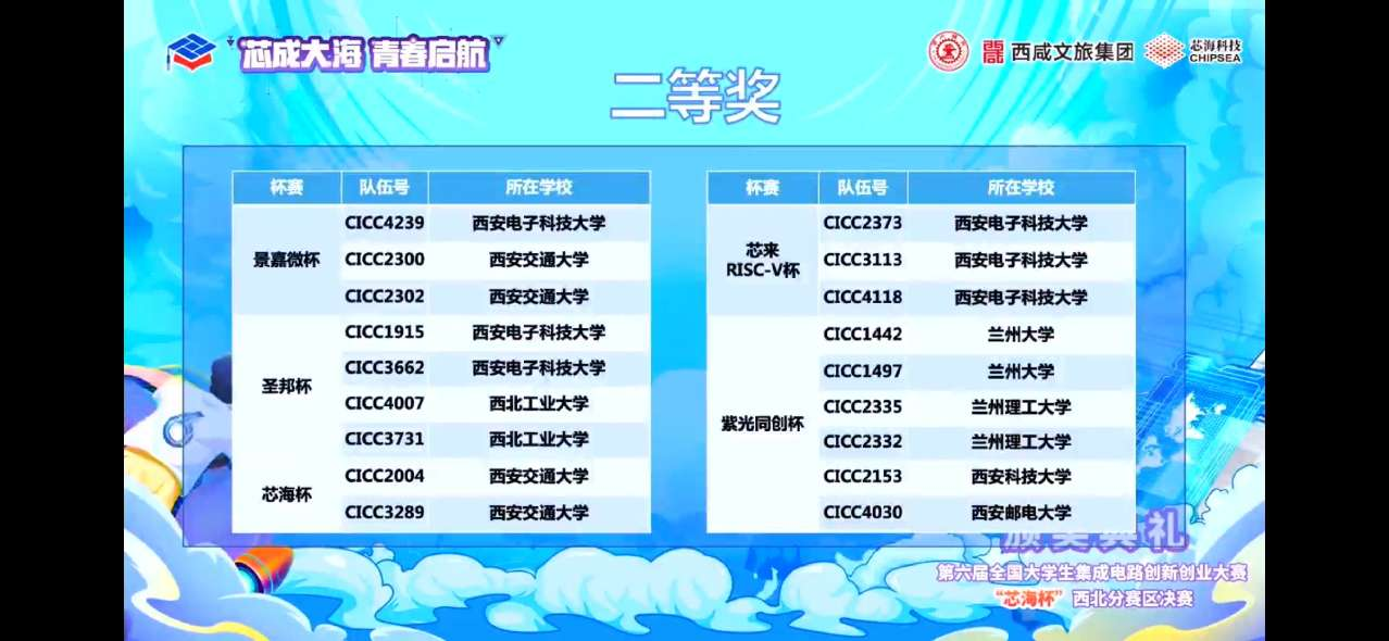 第六届全国大学生集成电路创新创业大赛于2022年3月正式启动,分为初赛、分区决赛、全国总决赛三级赛事。随着初赛晋级名单公示我校共有21支队伍入围,于2022年7月14日举行分赛区决赛,经过激烈的角逐我校共有15支队伍获奖,其中Robei杯一等奖1项,二等奖1项,紫光同创杯一等奖1项,二等奖2项,三等奖2项,芯原杯二等奖5项,三等奖3项,取得了傲人的成绩。其中两项一等奖参赛队伍晋级本次集创赛国赛,将代表我校参加8月份的全国总决赛。此次竞赛加强了学校学生实践能力和创新意识,提高了学生集成电路设计能力和水平。