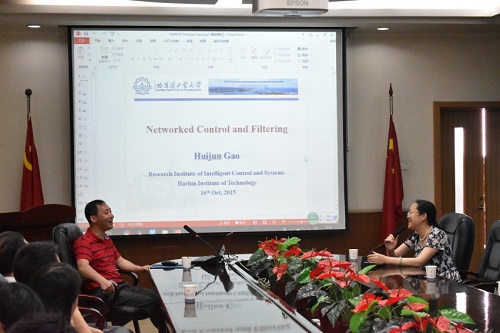 高教授的报告主要从网络化控制系统的应用背景、目前的研究现状及存在的问题,以及将来的研究方向等三个方面展开,并结合高教授团队的研究工作和成果,进行了详细生动的介绍。这为我校从事网络控制相关研究方向的教师提供了很好的思路和交流机会。会后,高教授还与聆听报告的师生就如何做好科研、青年教师如果过科研关与教学关及科研团队的建设等方面进行了积极、热烈的交流与讨论,同时,为我院学科建设等方面也提出了很好的建设性意见。