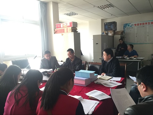杨雅琼副书记首先就2015年秋季学期学院各项学生工作进行了总结:2015年秋季学期,学院学生工作围绕学校学生工作中心,以辅导员工作课程化为载体,切实加强对学生的思想教育工作;辅导员和班主任共走访学生宿舍80余次,与100余名学困生进行谈心谈话并做好了相关记录,学院本科学生挂科率与同期相比下降8.11%。大家的付出和努力得到了学院的肯定,希望大家在新的学期一如既往地全心全意为学生服务。新学期,将继续加强网络思政教育,强化学风建设成果。随后各年级辅导员对本年级上学期的工作做了总结:然后各年级辅导员通报了上学期各年级考试成绩,最后全体班主任和辅导员对《电信学院学生诚信考评体系(试行)》做了讨论。