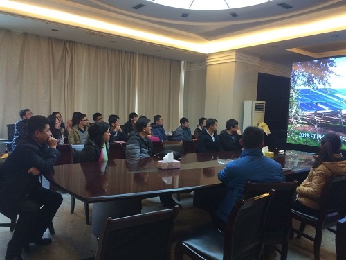 风电中心汪宁渤主任对863项目、风电与光伏等新能源的发展前景进行了介绍,从能源发展的背景、可再生能源发展情况、大规模可再生能源的优势与挑战、关键技术研究、风电技术中心科技成果简介以及发展与展望六个方面作了详细讲解,并就新型风电机组、分布式电源及微电网发展前景等问题与老师和同学们展开了讨论;随后,老师、同学们对风电中心的风电物理仿真平台实验室、系统机房以及风光联合预测实验室进行了参观,对平台建设情况、主要功能、以及风光联合预测等过程进行了深入了解。