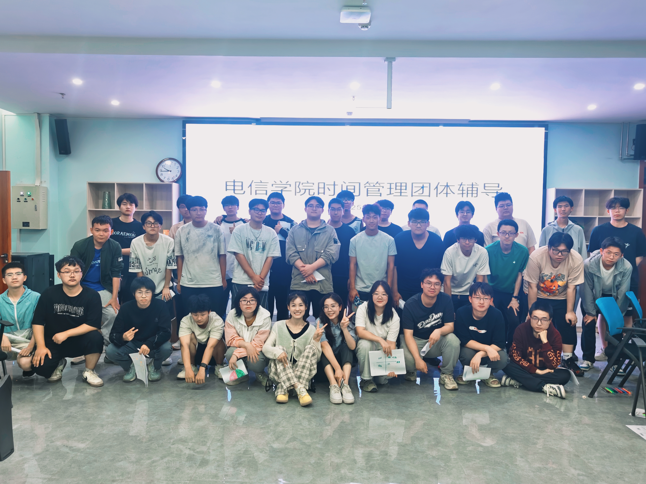 为强化学风建设实效,助力学生提升自我时间管理能力,5月27日晚,电信学院心理辅导站在大学生活动中心523 室举办时间管理团体辅导活动,活动由辅导员老师张青青、魏瑶组织,40名同学通过情景体验掌握科学时间管理方法。