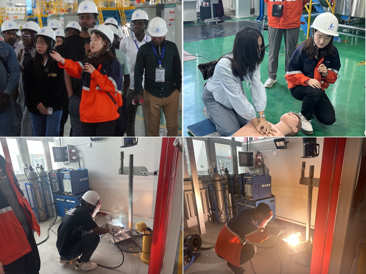 兰州石化吴佩兄工程师带领留学生们系统参观了现代化石化蒸馏教学设备,学习自动化控制流程与安全规范。随后,面向留学生开展了急救知识专题培训(含心肺复苏),留学生们在教师指导下一一进行模拟实操。参观实习环节让留学生们对大型工业装置的运行与特殊情况急救处理有了直观认识。