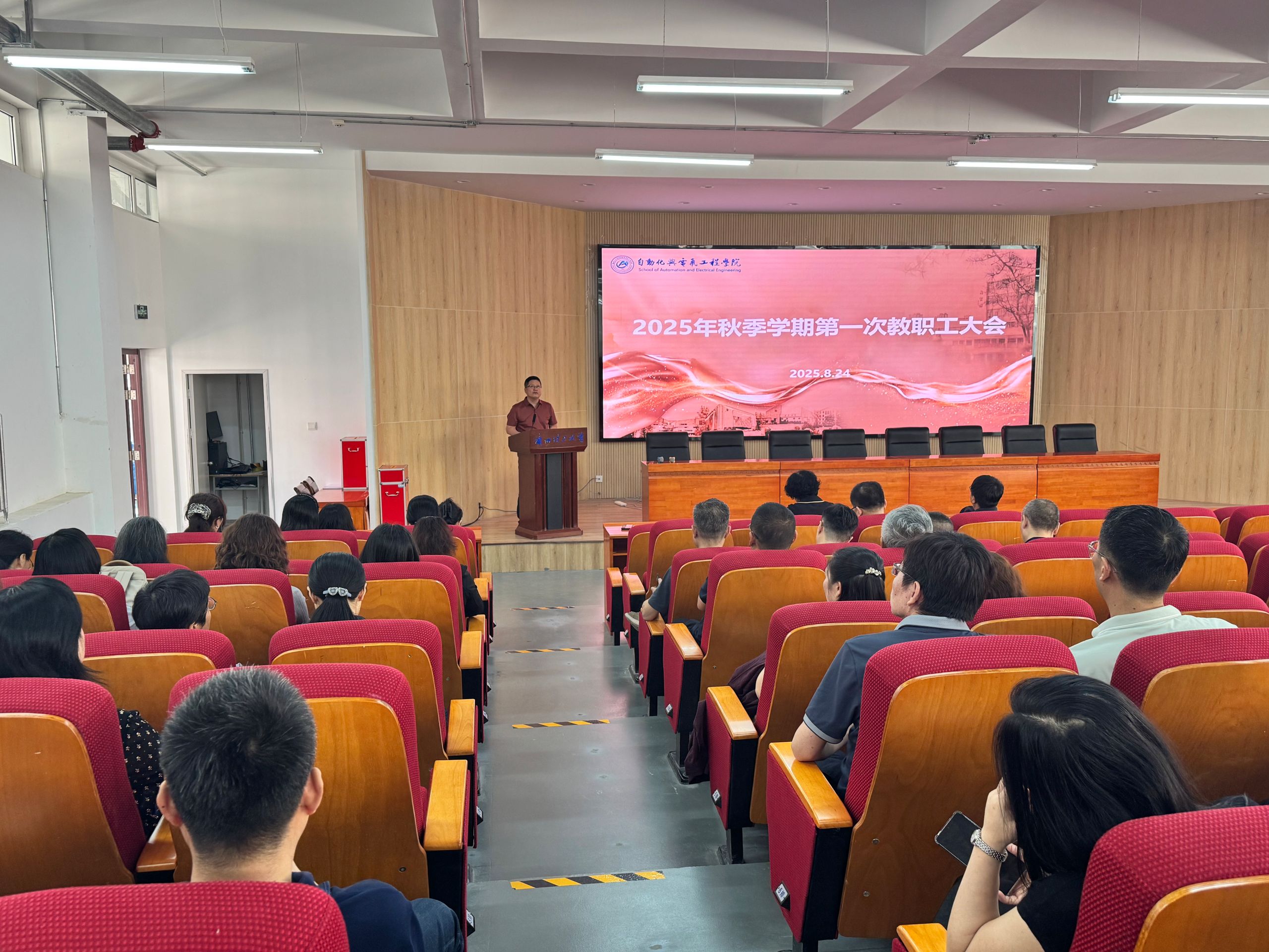 在舒卷楼D401召开2025年秋季学期第一次教职工大会暨师德师风警示教育大会,学院领导班子及全体教职工参加会议,共同谋划新学期发展蓝图,筑牢师德师风与校园安全防线。会议由学院院长李二超主持。