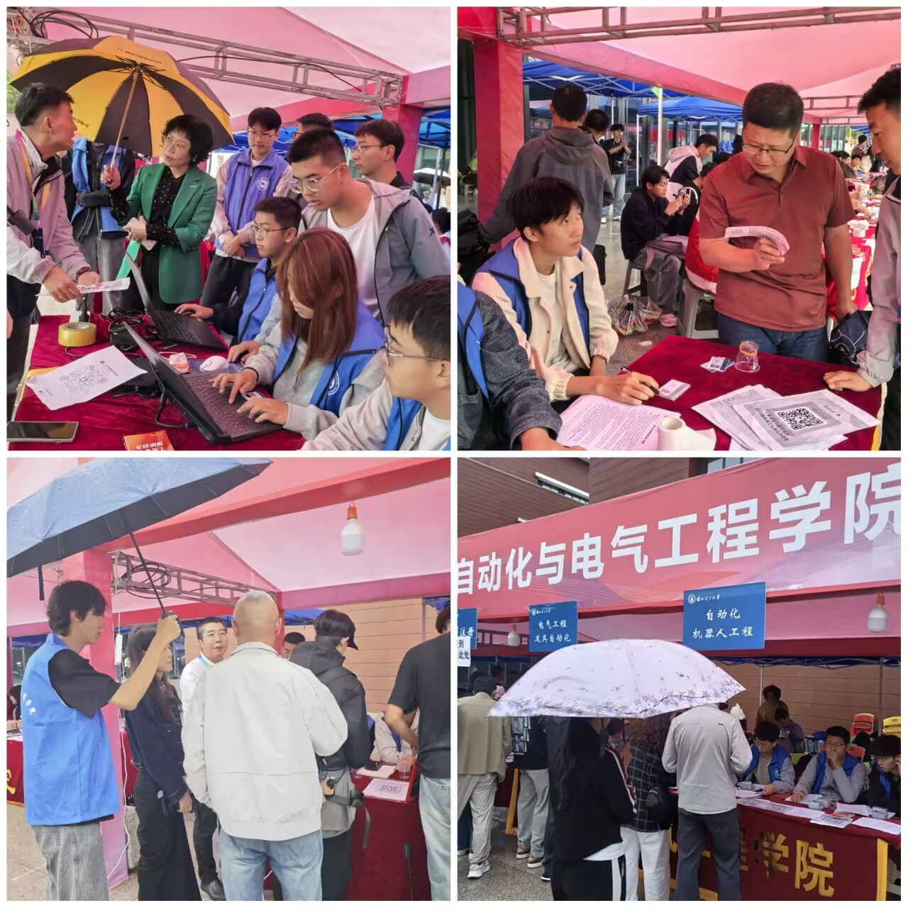 为确保迎新工作高效开展,学院提前部署、周密安排,各岗位工作人员准备充分。尽管秋雨连绵,迎新现场却秩序井然、温情洋溢。清晨时分,迎新点早已准备就绪。工作人员冒雨提前到岗,投入材料整理、名单核对、场地布置等准备工作。报到环节中,身份核验、信息登记、材料发放及入学指引等流程高效衔接、操作顺畅。所有工作人员始终做到耐心引导、微笑服务,及时化解新生与家长的急切和焦虑。
