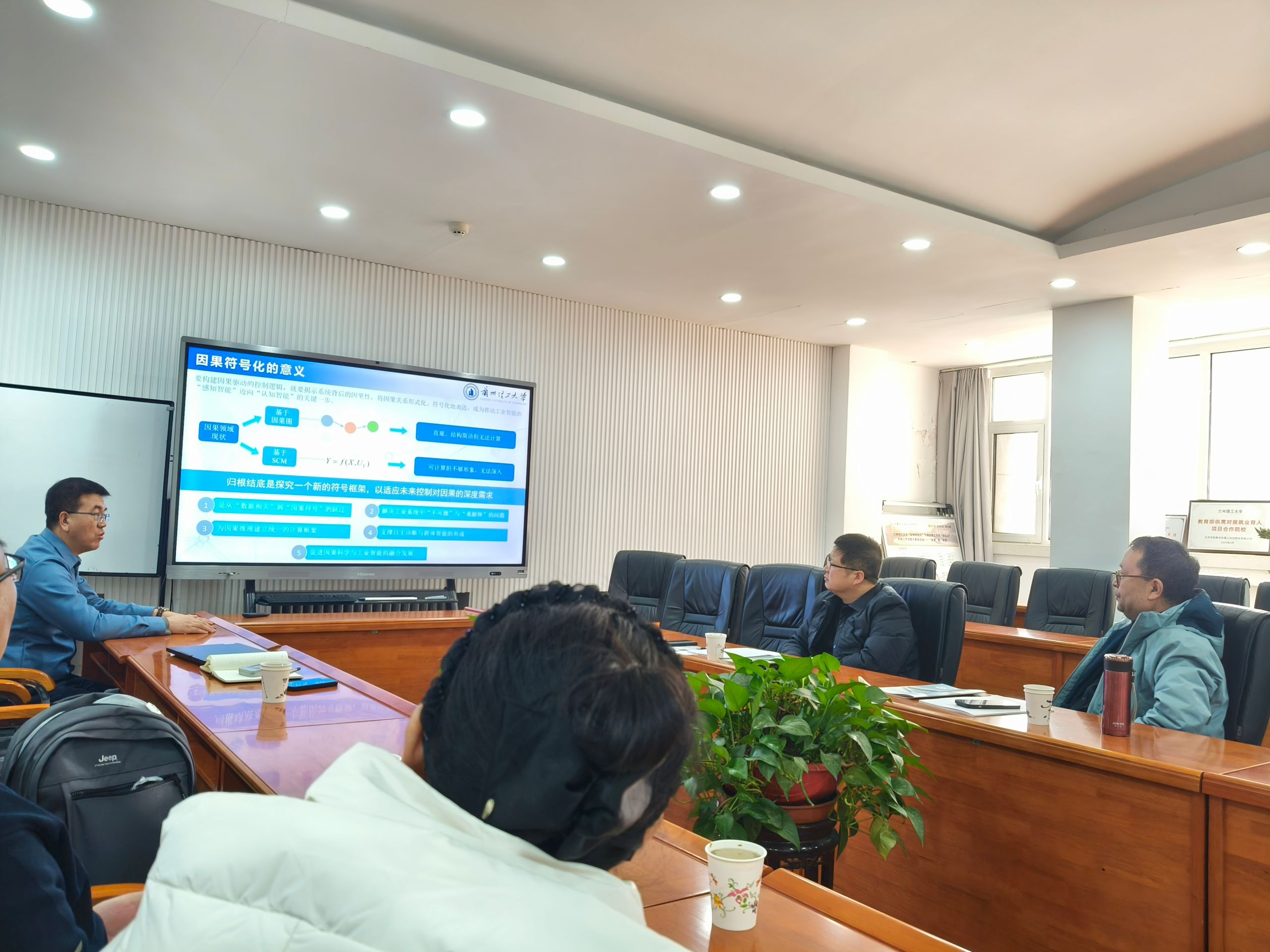 交流期间,杨光红教授听取了学院教师在多智能体系统协同控制方面的研究进展汇报。他对学院团队取得的成果表示充分肯定,并基于自身深厚的科研积淀,对未来研究方向提出了宝贵建议。他鼓励大家保持科研热情,注重将前沿基础研究与国家重大需求、行业技术发展相结合,勇于探索并解决具有实际价值的科学问题。