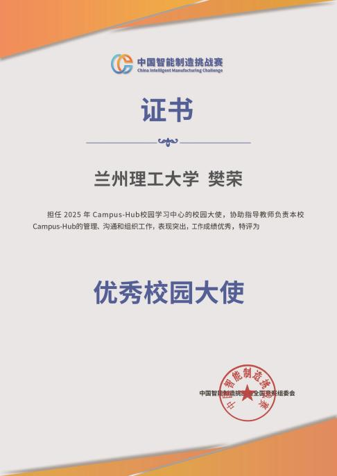 樊荣同学获评“优秀校园大使”,冯小林老师荣获“优秀HUB指导教师”。本年度评优工作由全国百余所院校的校园大使依据学习中心年度总结、活动组织频次及月度任务完成情况开展初步评定,经组委会秘书处复审后确定最终结果,全国仅12所高校获此殊荣,竞争尤为激烈。
