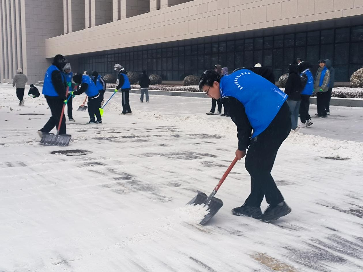 12月9日,兰州迎来大雪降温天气。为切实保障校园安全畅通,维护师生正常出行安全,电信学院团委迅速行动,组织志愿者开展清雪活动,以行动传递冬日温暖。本次志愿服务由电信学院团委书记朱毅林带队,电子2班本科生党支部全体党员、团委学生会全体学生骨干共计53人参加。