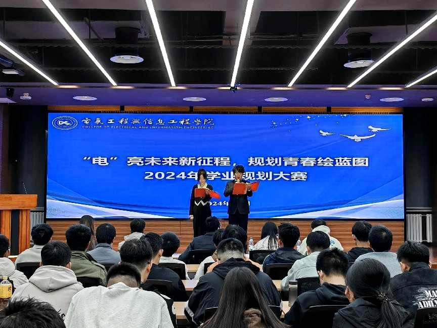 为进一步打造“尚学电信”品牌文化,推动优良学风建设,引导学生及早树立学业规划理念,明确学业发展目标,以昂扬奋进的青春风貌迎接党代会的召开,11月15日晚,电信学院在彭家坪校区图书馆106报告厅举办“‘电’亮未来新征程,规划青春绘蓝图”学业规划大赛。电信学院党委副书记刘炜、土木学院辅导员任海鹏、电信学院辅导员逯滢、朱毅林及学生代表担任评委。