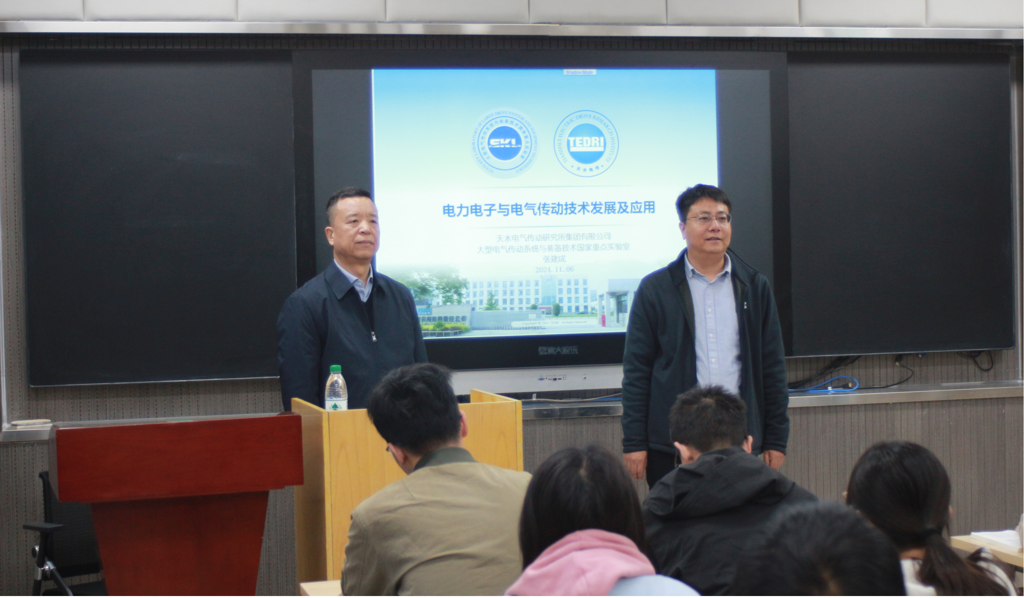 2024年11月6日上午,天水电气传动研究所张建成总工在兰州理工大学彭家坪校区励勤楼(原6号楼)207智慧教室以“电力电子与电气传动技术发展及应用”为题为电信学院电气工程及其自动化专业大三学生带来一场精彩的课程讲座。讲座由学院副院长张宏亮主持,电力电子课程组王兴贵教授、李晓英、薛晟、王海亮教师及李锦键博士研究生等参加了本次讲座。