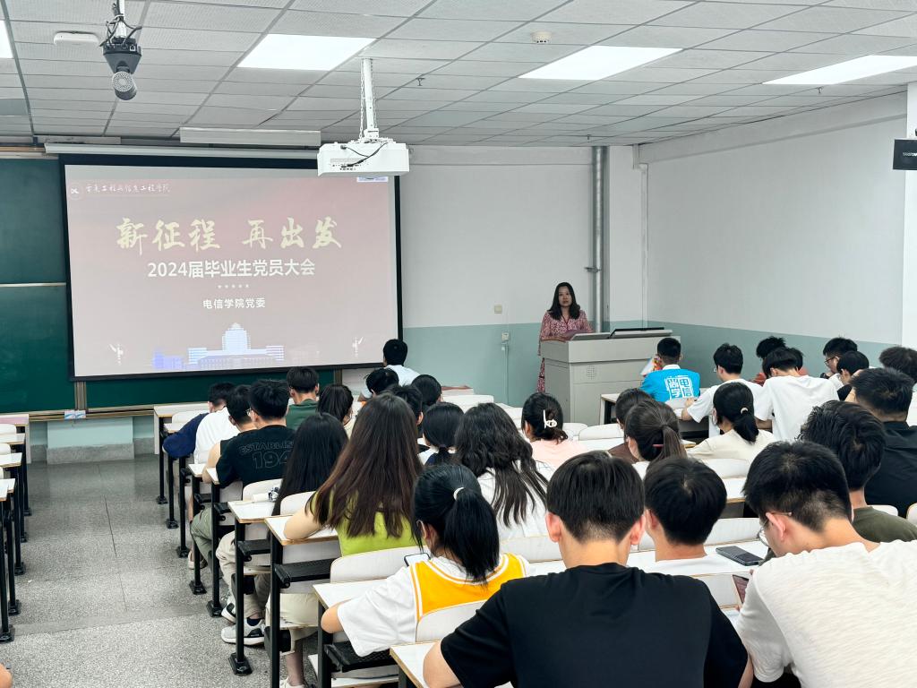 为推进党纪学习教育走深走实,增强毕业生党员党员意识和廉洁自律意识,6月18日下午,电信学院在彭家坪校区敦雅楼C201教室召开2024届毕业生党员谈心谈话暨廉洁教育大会。学院党委书记杨雅琼,副书记刘炜,全体学生党支部书记,2024届全体毕业生党员参加了会议。会议由学院党委副书记刘炜主持会议。