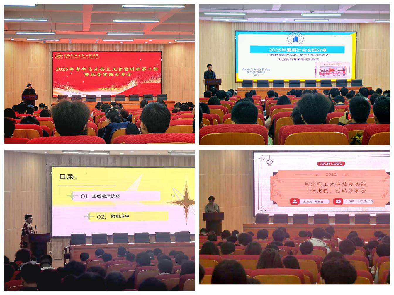 在舒卷楼D401教室成功举办青年马克思主义者培训班第三讲暨社会实践分享会。学院辅导员李明、赵雅婷,“三下乡”重点实践团队成员、青马工程全体学员及2025级新生代表共同参与。