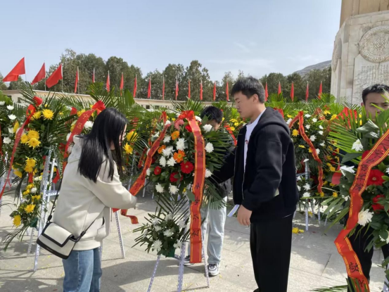 英烈精神永垂不朽,后辈铭记矢志不忘。在革命英雄纪念碑前,在场师生齐唱《中华人民共和国国歌》,而后庄严肃立,悼念长眠英灵,寄托对革命先辈的深切哀思。同学们缓缓走向革命烈士纪念碑敬献花篮,向革命烈士默哀致敬。在陈红军烈士墓前,学院团委老师为同学们介绍陈红军烈士生前事迹,同学们认真聆听,并现场清理杂草,擦拭墓碑,敬献鲜花,并向烈士行鞠躬礼。最后,全体师生参观了兰州战役纪念馆。在工作人员的讲解下,同学们认真学习了一段段感人肺腑的英勇事迹,再次深切感受到了革命先烈们坚定不移的政治信念、舍生忘死的奋斗精神和大无畏的英雄气概。同学们纷纷表示,作为新时代青年,要不忘历史,积极传承红色革命精神,为实现中华民族伟大复兴努力奋斗。