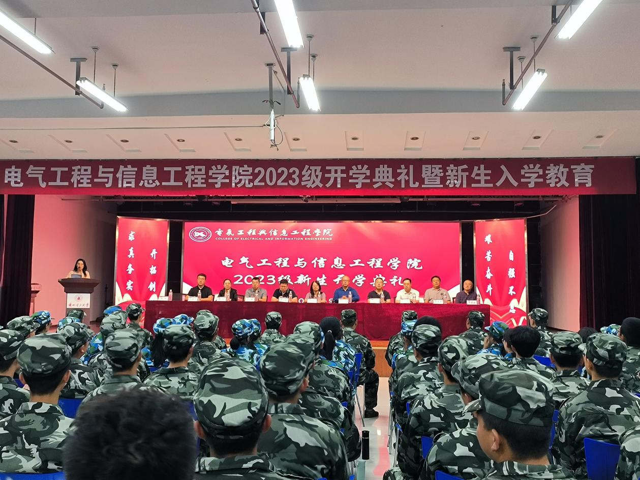 典礼仪式上,学院领导为2023级新生代表佩戴校徽。学院院长陈伟教授代表学院向2023级新生表示衷心祝贺和热烈欢迎。陈院长首先向大家介绍了学院的发展历程和专业学科建设情况,并向同学们提出了几点建议和期望。陈院长寄语新同学:一是要延续红柳精神,坚定“使命在肩、强国有我”的时代担当。二是要践行奋进求是,坚定“自强不息,锐意进取”的奋斗精神。三是要坚持实干笃行,坚定“勤学问道、求真务实”的治学态度。希望大家来到电气工程与信息工程学院,能够不负韶华、不负时代,以红柳精神为指引,践行“奋进求是”的校训,不负时代赋予的使命担当,敲响新时代青年大学生的最强音,昂首阔步迈向属于每个人的广阔未来!
