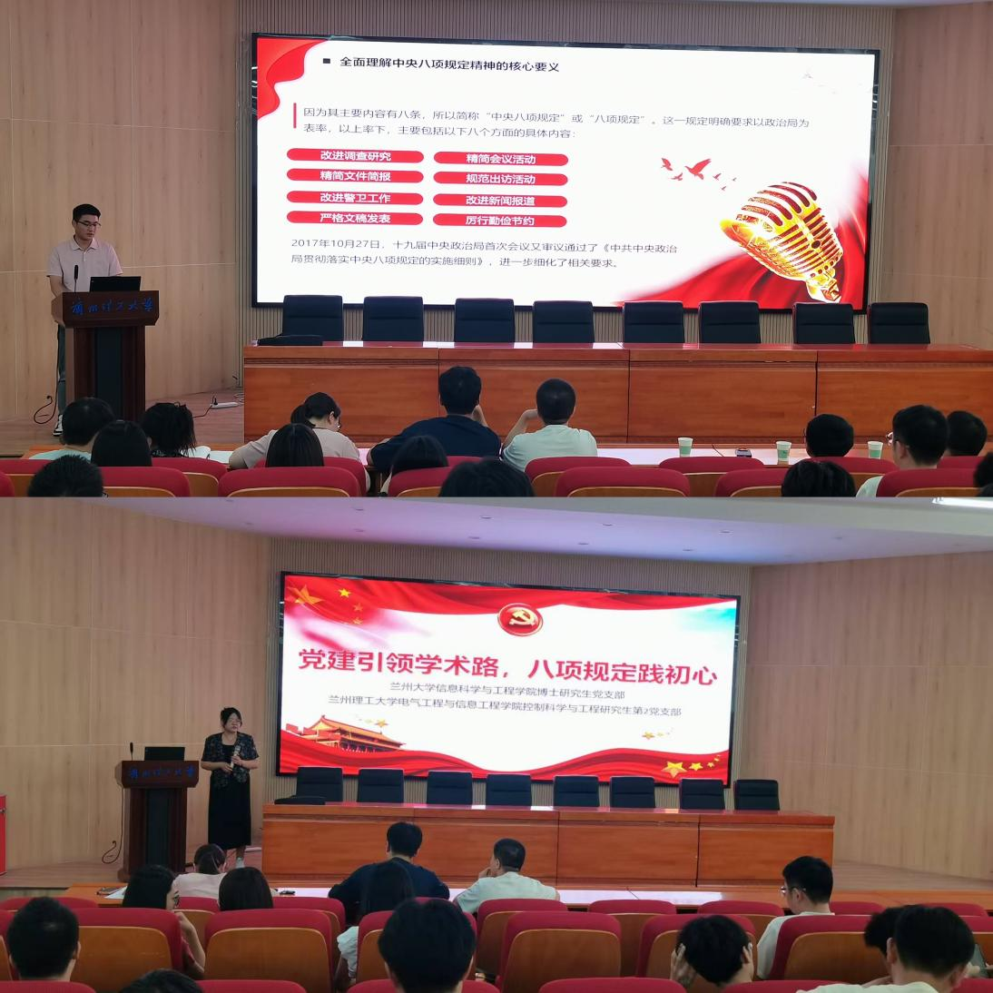 为深入贯彻中央八项规定精神学习教育,增进高校间研究生党员相互学习交流,6月18日下午,电信学院控制科学与工程研究生第2党支部与兰州大学信息科学与工程学院博士研究生党支部,在彭家坪校区舒卷楼D401开展主题联建活动,以党建为纽带,共话学术与成长。